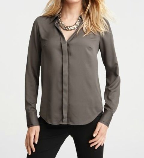 {Ann Taylor - Overlapping Placket Long Sleeve Blouse}